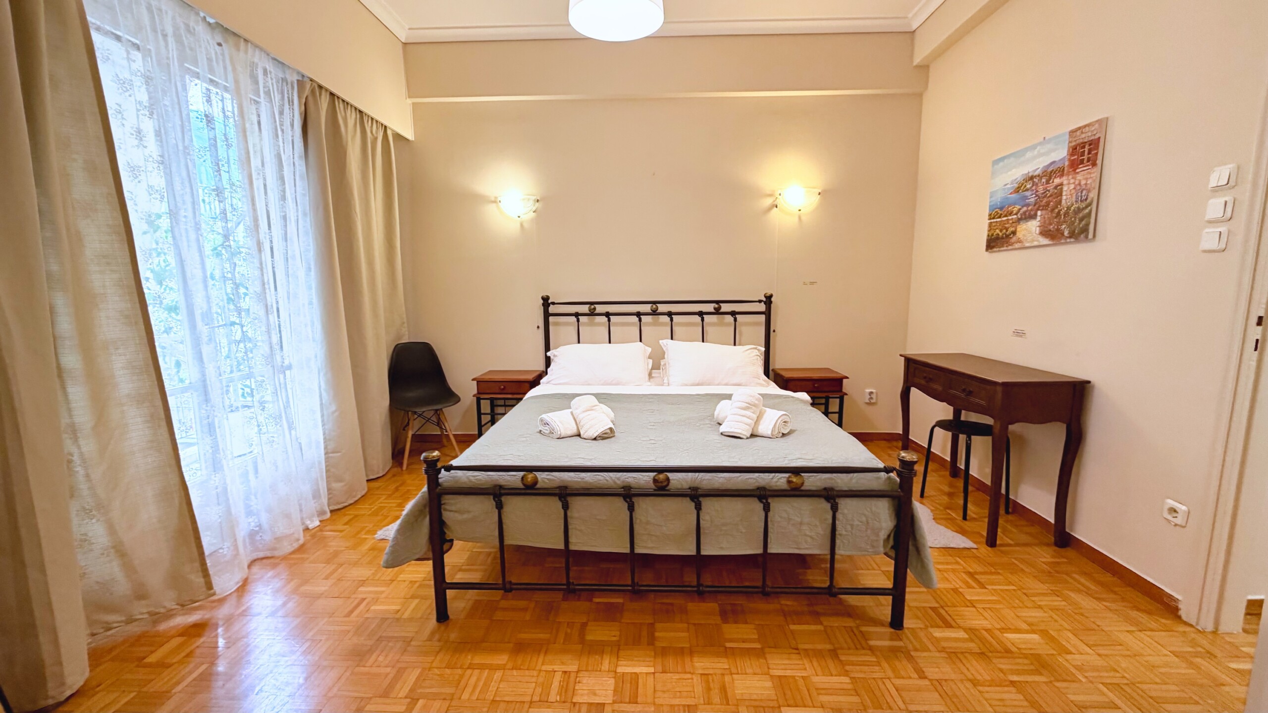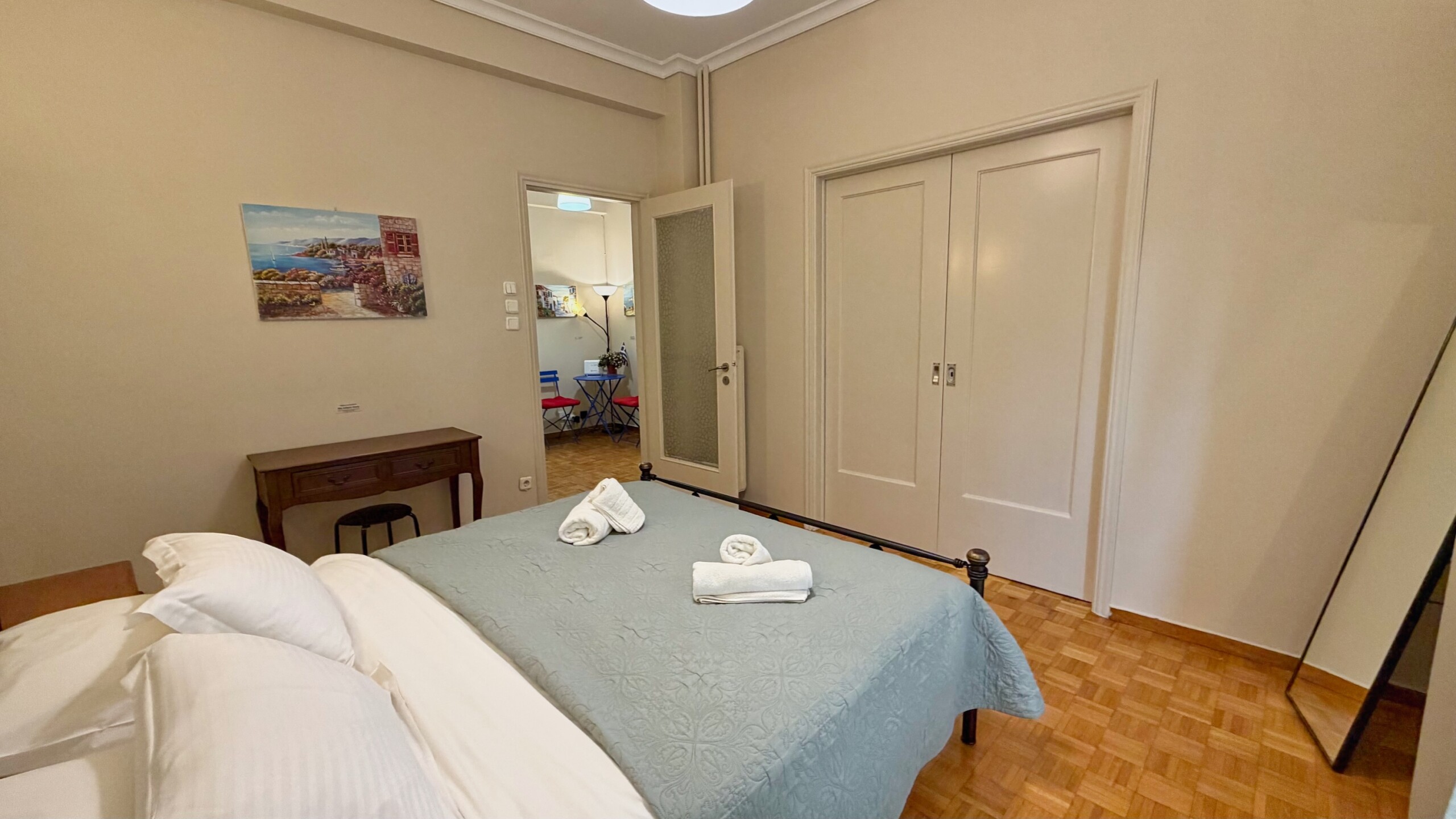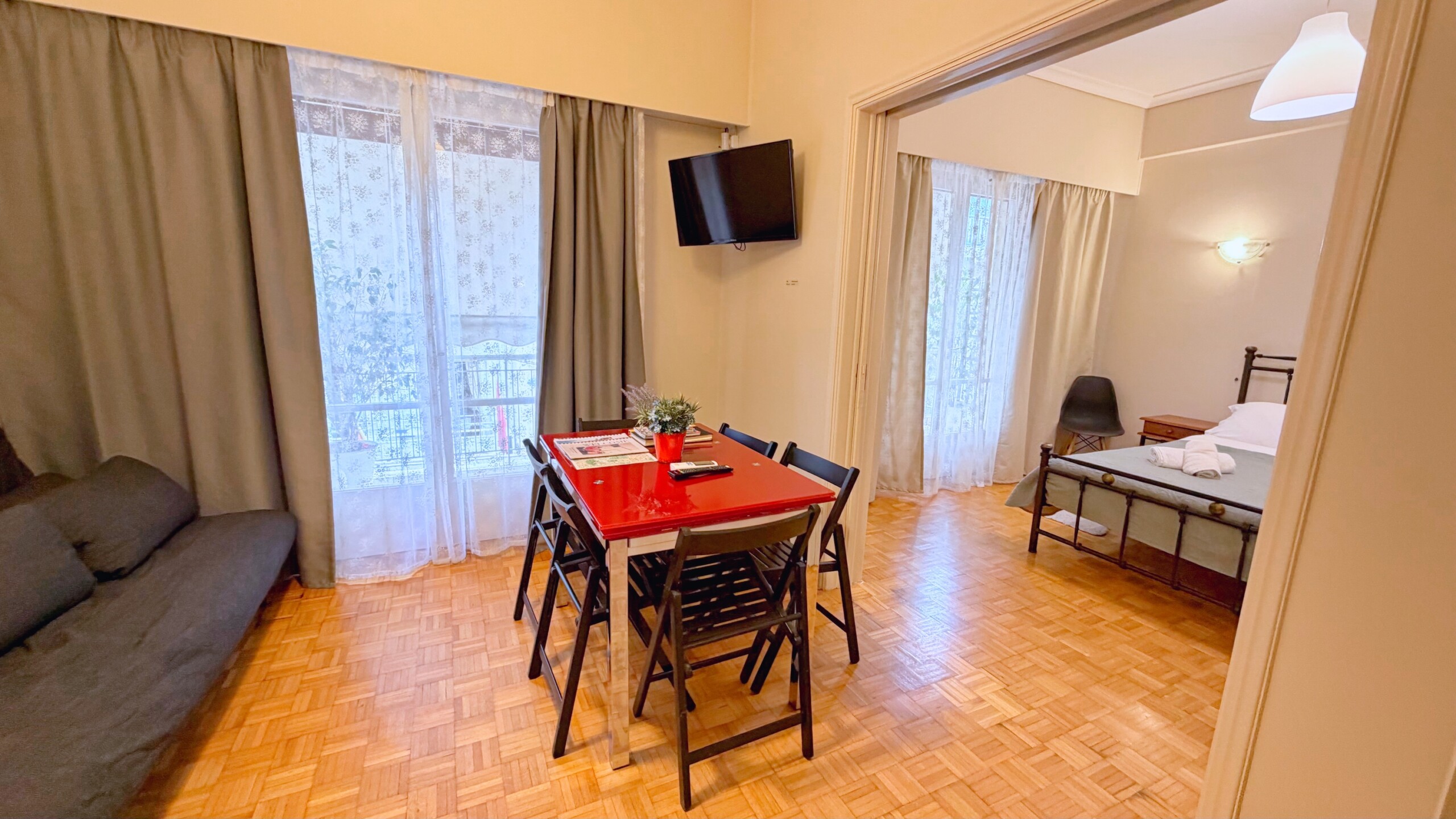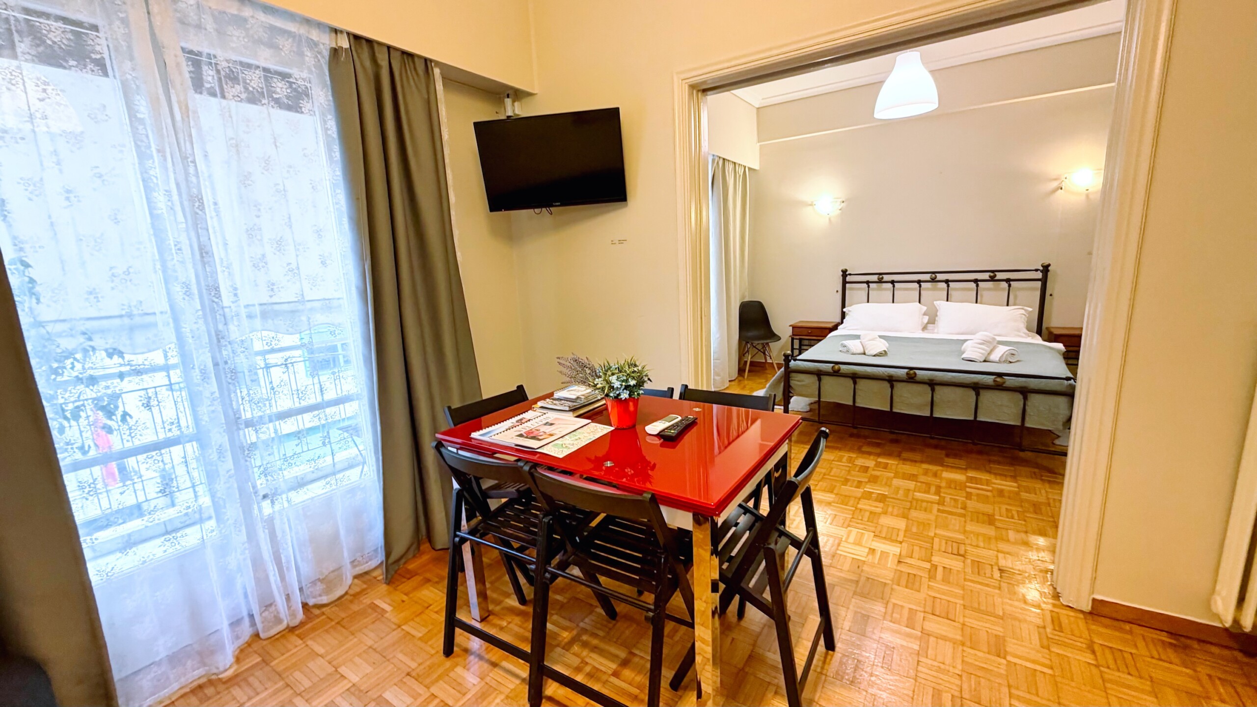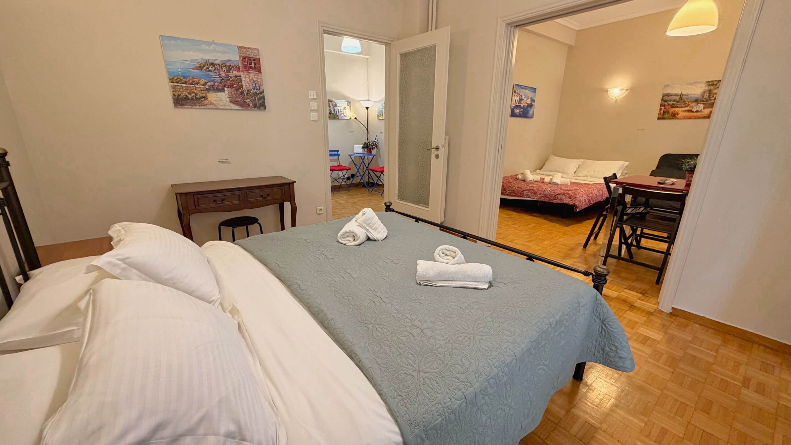 Ne cherchez pas plus loin, c’est parfait et vraiment très près de l’Acropole. L’accueil est amical, attentionné, Georges (le frère de Vasiliki) nous attendant dans la rue pour nous garder une place de parking, puis nous aider à porter nos valises, nous expliquer où tout trouver dans l’appartement, comment nous déplacer aux alentours, nous conseiller une bonne taverne. L’appartement est très propre, parfaitement équipé. Balcon pour chaque chambre. Réactivité parfaite aux SMS. Bref, tout excellent. Et même un délicieux gâteau et vin de bienvenue.