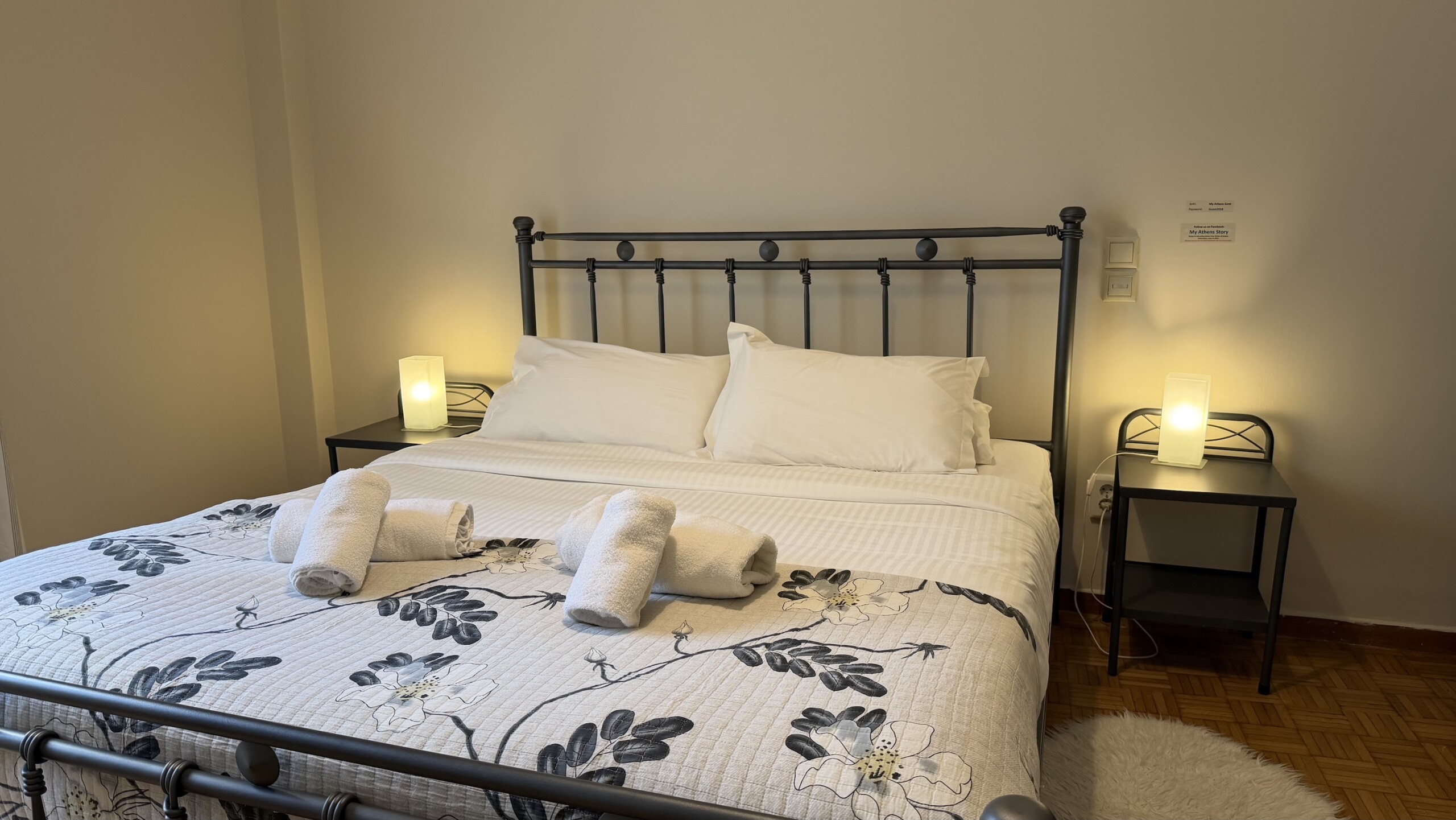 We had a great time at Haris apartment. The apartment is very nice, very clean and in super location. Just 4 minutes walk to the Acropolis museum and 10 minutes walk to Acropolis entrance. Haris is a super host and very friendly, we arrived very early in the morning (5 am) and Harris arranged for us pickup from the airport. The driver showed us the apartments then dropped us at a luggage storage locker at the end of the street as previous guests in the apartment were checking out at 11 and Haris made every effort to have the apartment ready for us by 12. Haris was very friendly, he presented for us a bottle of Greek wine and a very tasty chocolate cake prepared by his beautiful wife. The apartment was equipped with all the necessary amenities (soap, shampoo, shower gel,…) of very good quality. The towels were made on the beds in flower shapes :). I felt like I am in a 5 stars hotel. At night sitting at the terrace is very nice. Thank you Haris